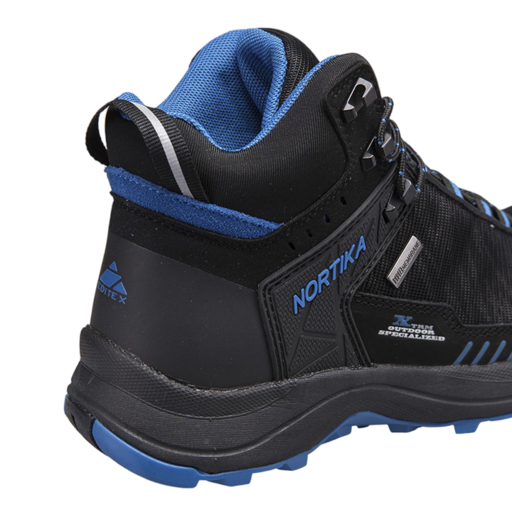 Использование современных материалов и качественной компоновки наделяют ботинки Editex Nortika высокими эксплуатационными качествами, делая ношение обуви удобным и позволяя ощущать комфорт даже в сложных походных условиях. Мембранный материал выполнен по технологии Waterproof Windproof Breathable (WWB), что в сочетании с водоотталкивающей обработкой наделяют ботинки высокими ветро- и влагозащитными качествами. За счёт микроскопических пор мембраны обеспечивается сохранение комфортного микроклимата внутри за счёт отвода водяного пара, что предотвращает образование парникового эффекта. Дополнительное усиление носка и пятки резиновыми вставками повышает износостойкие качества изделия, защищая ноги владельца от ударов об камни. Использование специальной стельки OrthoLite с антимикробной обработкой предотвращает образование неприятного запаха и обеспечивает комфортную вентиляцию стопы ног. Подошва Ultra Slip Protection (USP) за счёт развитого рисунка протектора создаёт надёжное сцепление даже в условиях сложного рельефа, а эффективная амортизация обеспечивает высокий уровень комфорта. Светоотражающие вставки делают дизайн ботинок более спортивным и позволяют быть заметным в тёмное время суток. Ботинки надёжно удерживаются на ноге за счёт крепкой шнуровке на петлях. Стильный дизайн чёрного цветового исполнения с синими вставками позволяет использовать обувь не только в качестве походной экипировки, но также и в городских условиях, позволяя стильно выглядеть на улице.Характеристики: